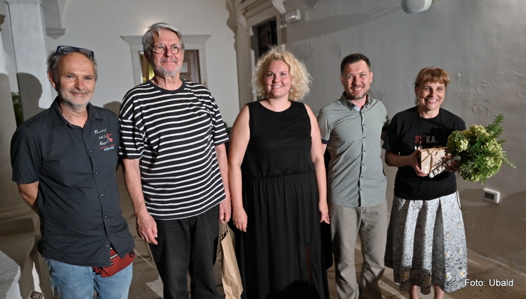 - Un troisième prix décerné par un Jury extérieur à la Slovénie concerne uniquement les kamishibaïs Slovènes. Pour ce prix, un jury est composé de trois personnes n’étant pas Slovène. Cette année j’ai eu l’honneur de faire partie du Jury avec Martin Porter, un kamishibaya anglais qui vit en France et qui fait partis de notre collectif Ultramobile, et Ivica Lučić, le directeur artistique du théâtre pour enfant Branka Mihaljevića en Croatie.