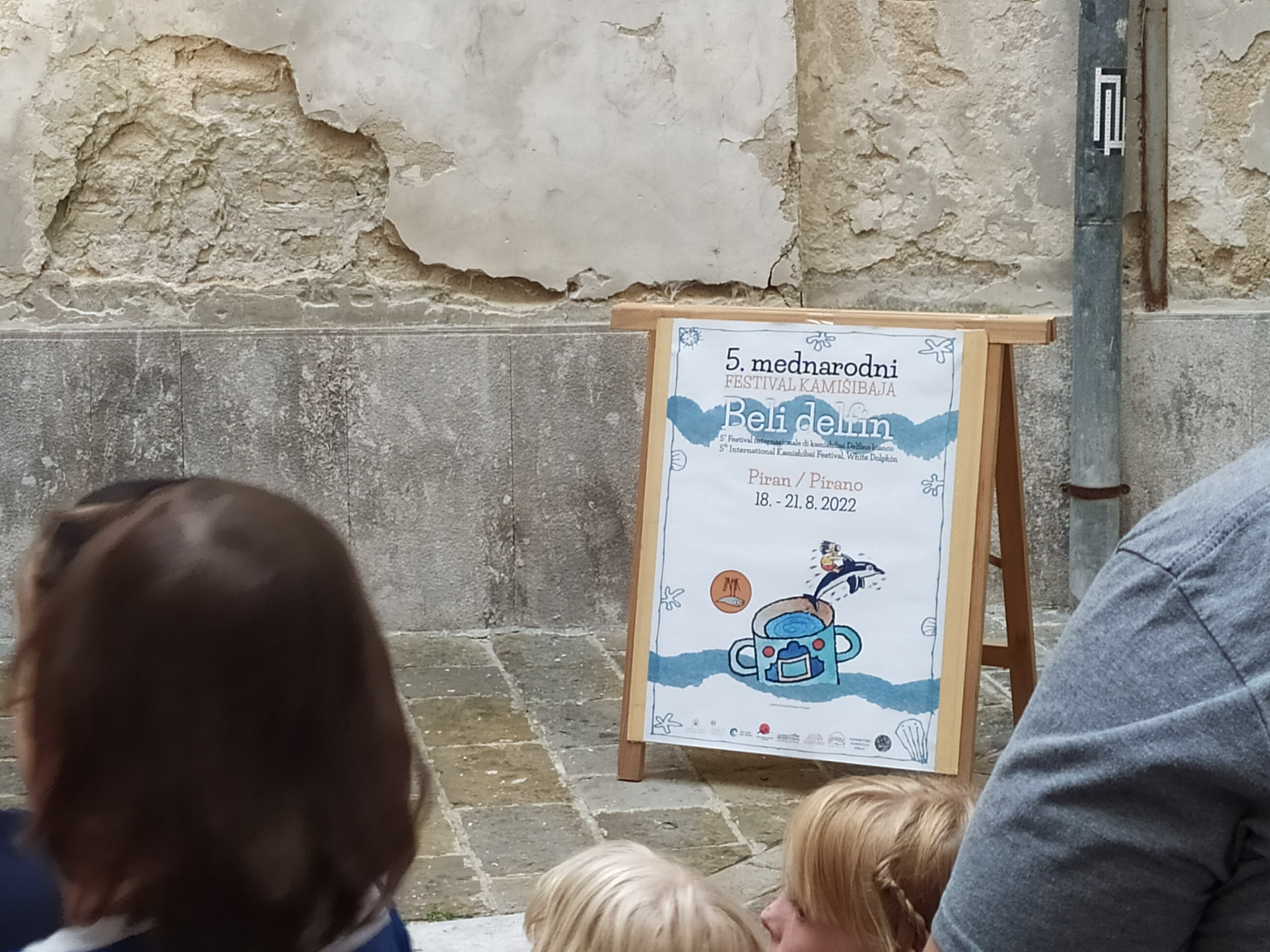 La Slovénie est le pays d’Europe le plus actif dans le développement du Kamishibaï. Grâce à l’énergie de Jelena Sitar et Igor Cvetko, une grande communauté de créateurs de kamishibaï sont présents dans toutes les régions de Slovénie. Depuis 10 ans, ils organisent des festivals régionaux, un festival national, et un festival international. Le festival international « Beli delfin » (dauphin blanc) a lieu tous les ans à la fin du mois d’aout à Piran, au bord de la mer Adriatique. Il y a deux ans déjà, j’avais eu la chance d’y être invitée avec Yuiko et Lydie. Cette année c’était le 5eme festival international, et nous avons été invité avec le Collectif Ultramobile, accompagnés par nos deux bibliothécaires préférées : Myriam et Camille.