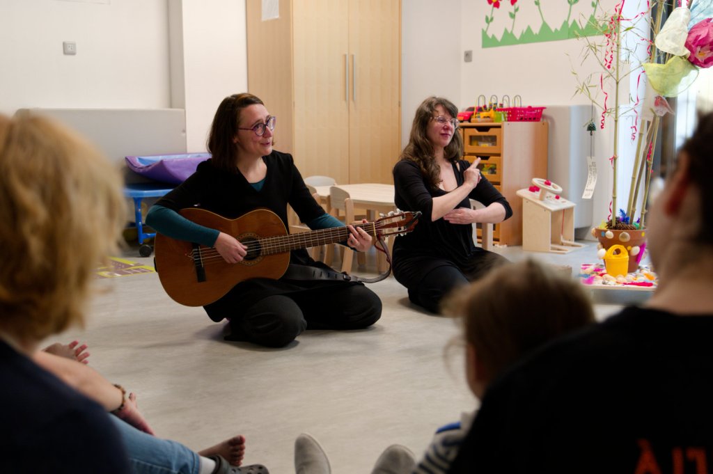 –Visuelle : Illustrations kamishibaï grand format (A2), danse, LSF et Chansigne.