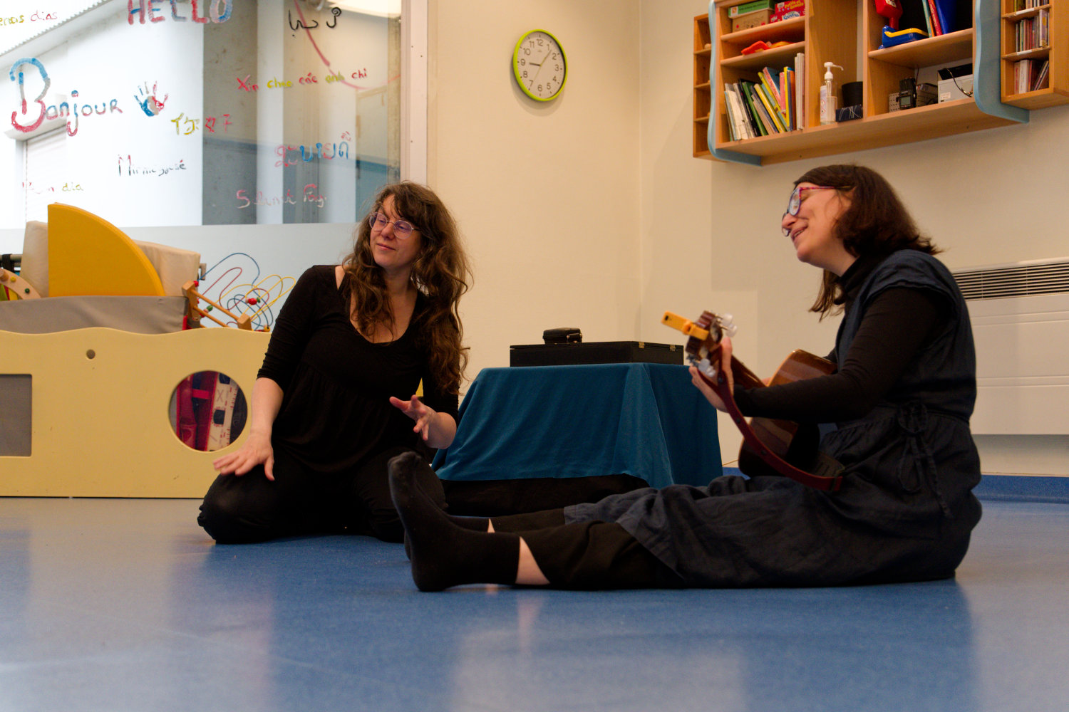 – Auditive : Parole, musique (guitare, voix, flûte traversière) chansons (Français, Japonais, Allemand) et objets sonores.