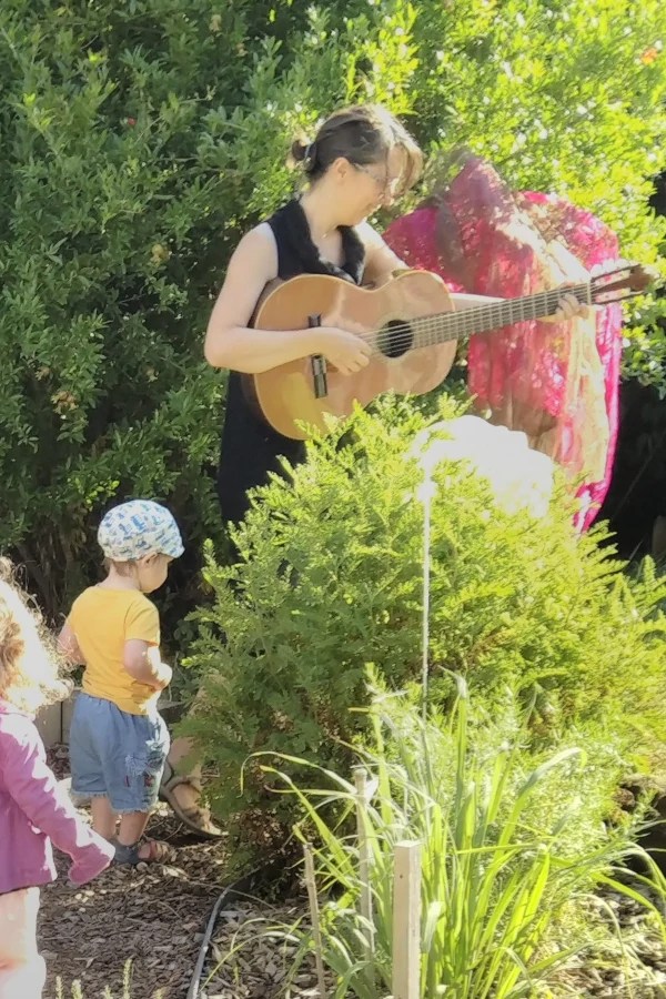 Depuis dix ans, Fanette écrit des chansons, des histoires, propose des spectacles, bals, et petits concerts, prévus pour être joués in situ, en structure d’accueil de jeunes enfants. Elle concentre ces créations sonores sur trois axes : La voix, la matière sonore, et la musique à danser.
